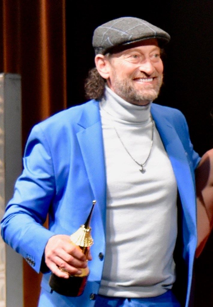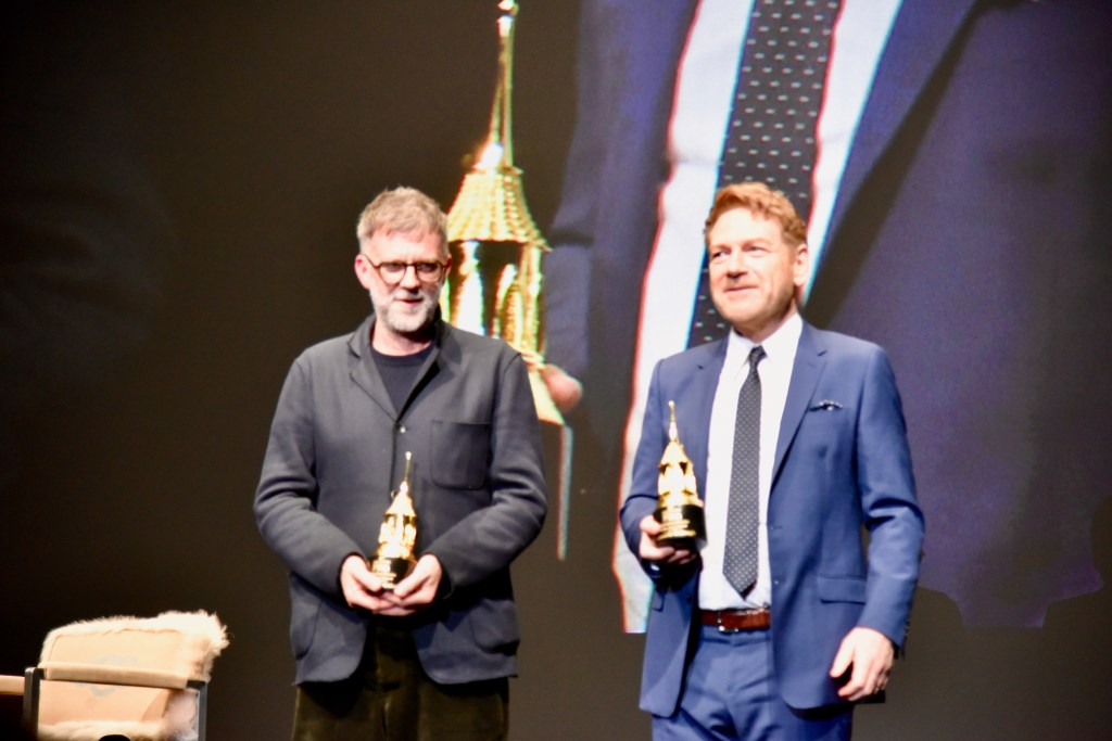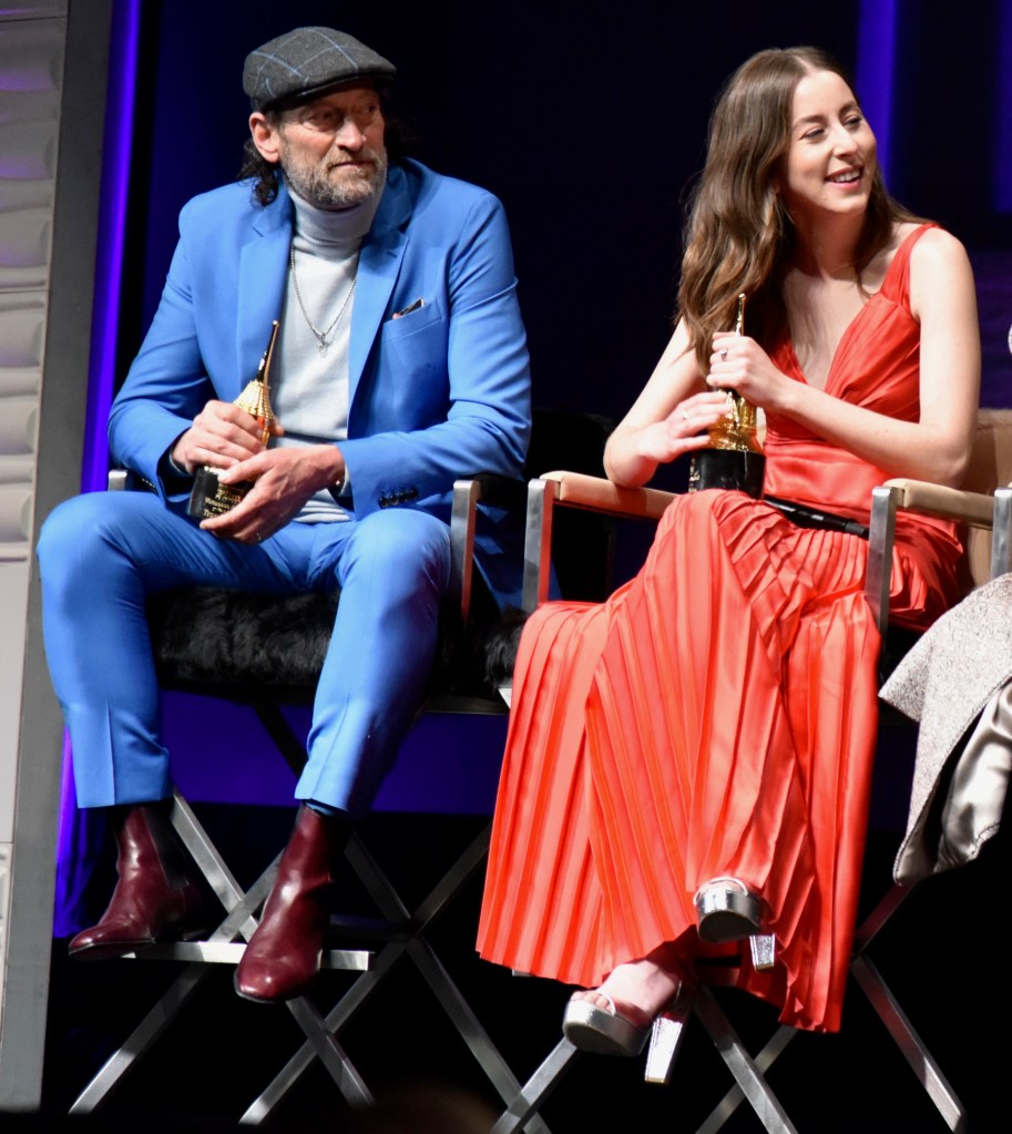 After the press line, Benedict was interviewed about all the roles he did from television with “Sherlock Holmes” to “Power of the Dog”. The evening was the most attended event at the festival selling out the Arlington. His award was presented to him by Jane Campion. After his speech he started to leave but came back pointing at something in the crowd. The actor was given a Ukrainian flag as a sign of support for the country amid the ongoing Russian invasion. He then posed for the press to take photos as fans rushed the front stage area.