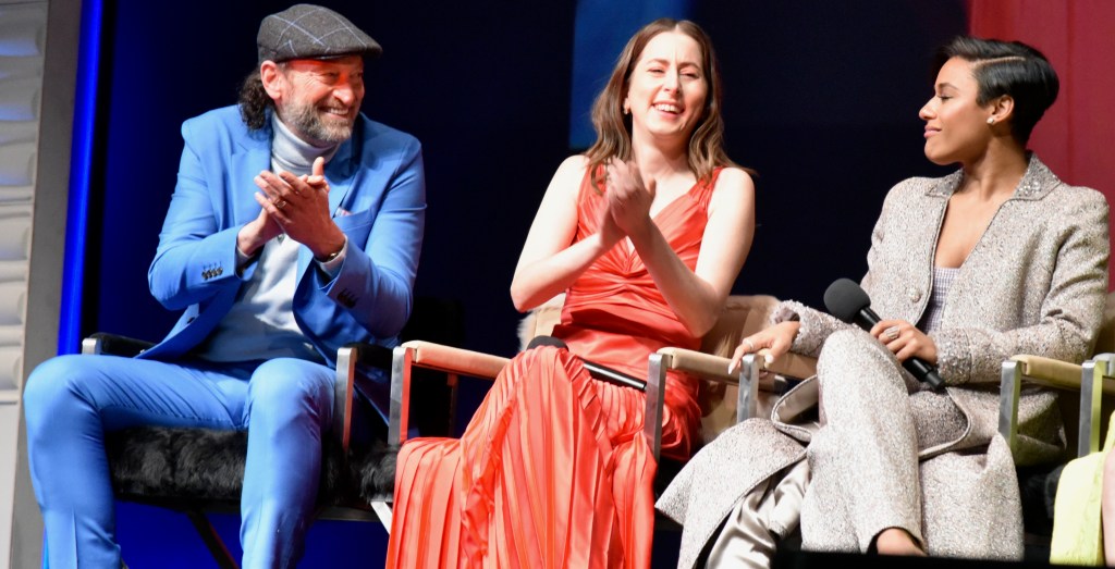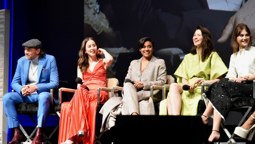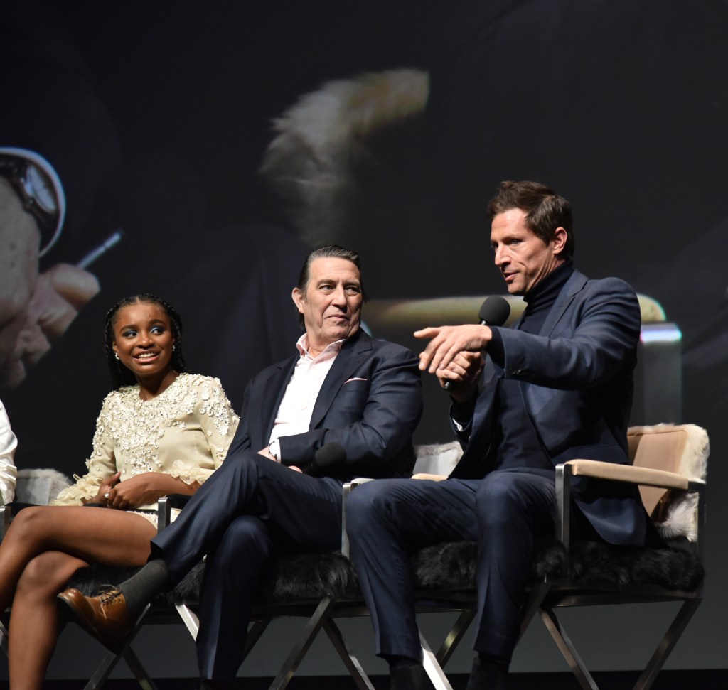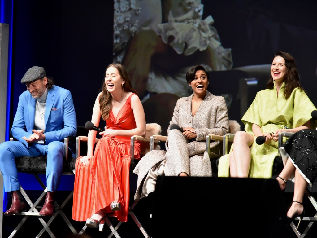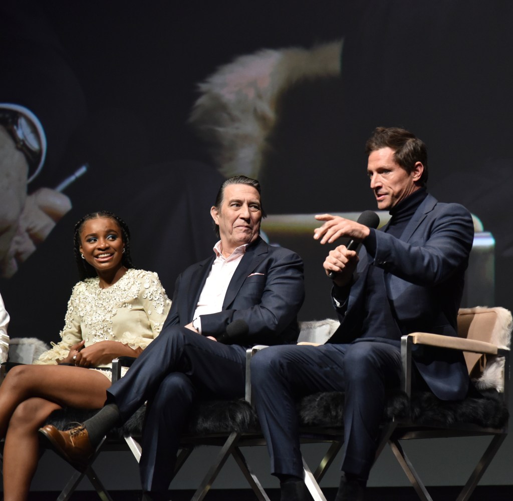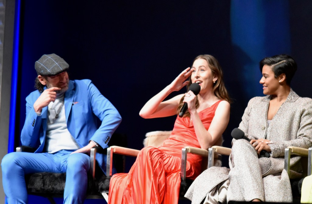 The next event was one of my favorite nights of the festival, the Virtuosos Award. This award was sponsored by UGG at the 37th Santa Barbara Film Festival at the Arlington Theatre. This award is given to multiple “up and coming” actors for achieving breakthrough performances. This year the festival honored Caitriona Balfe (Belfast), Ariana DeBose (West Side Story), Alana Haim (Licorice Pizza), Emilia Jones (CODA), Troy Kotsur (CODA), Simon Rex (Red Rocket), Saniyya Sidney (King Richard) and Ciarán Hinds (Belfast). The actors were interviewed on stage separately by Dave Karger, Turner Classic Movie Host, who moderated the conversation. The star of the night was Troy Kotsur (CODA). The deaf actor proved that not only is he a great dramatic actor but he was really funny. I’ve got a feeling he will be taking home the Oscar this weekend.