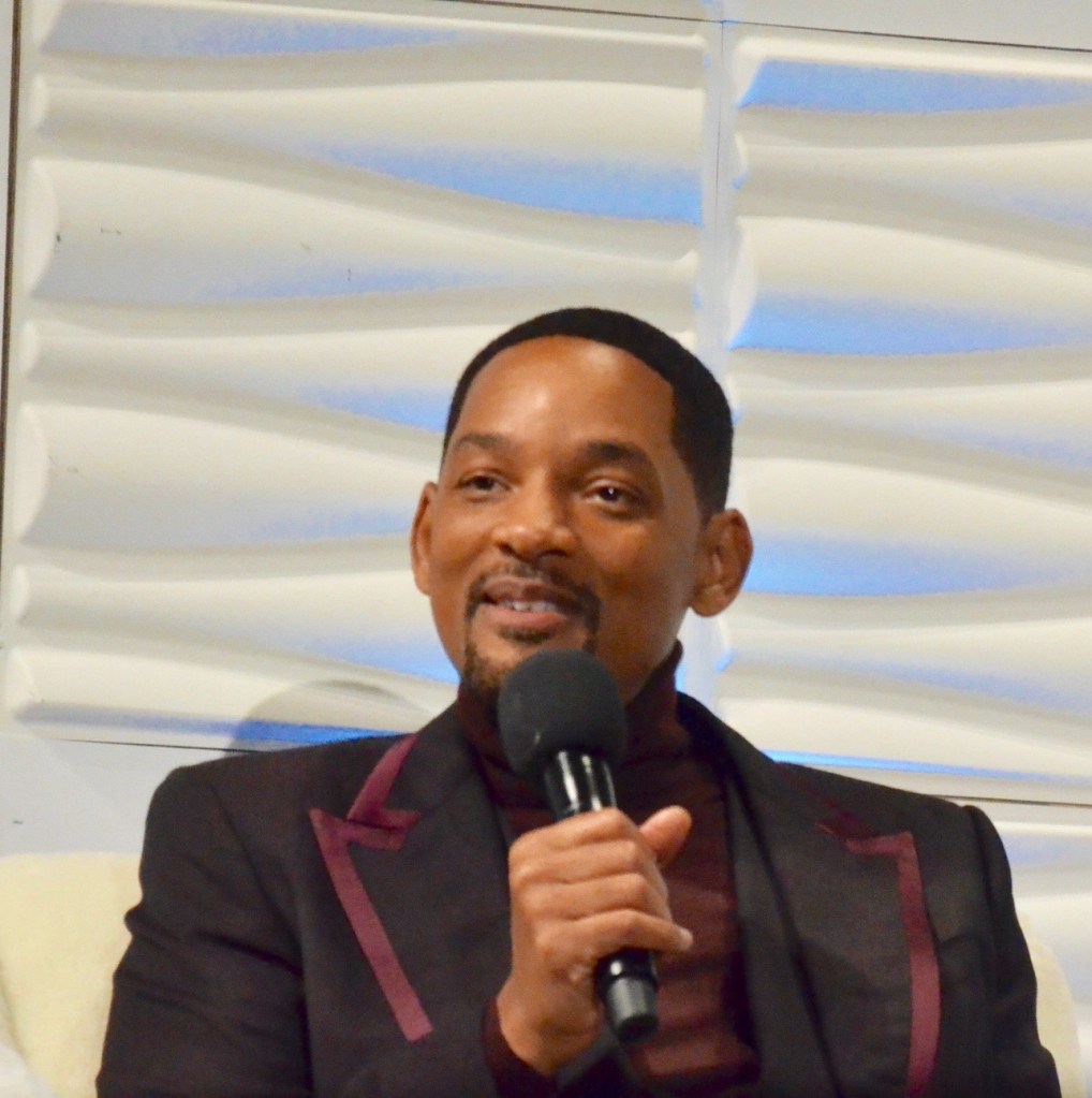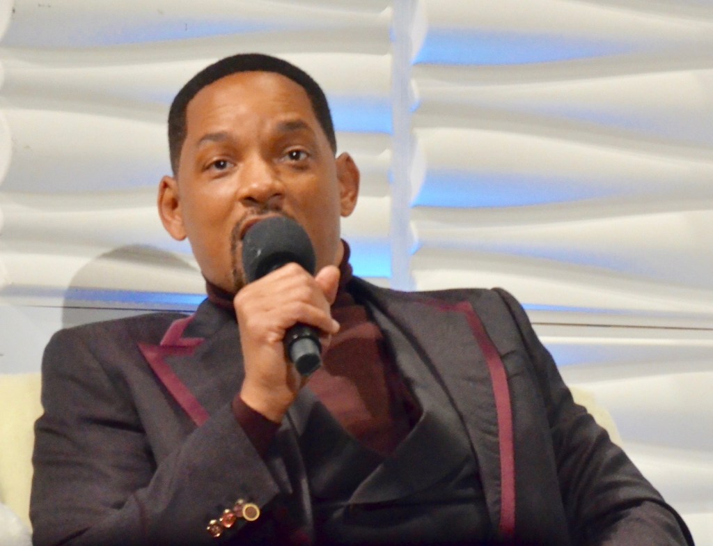 The evenings started off with The Hollywood Reporter moderator, Scott Feinberg, showing clips and speaking with the actors while walking through their past films. Scott is one of the best moderators, however nobody could have predicted what was next. Shortly before the tribute started I was in my seat and these two drunk girls tried to sit in the media area. Luckily the volunteer made sure they left the press and talent area seats. Fast forward to about 15 minutes into the interview when I heard people talking and acting like they were at a bar. The scuffling got louder and louder. I wanted to get out of my seat and tell them to shut up! The scuffling only got louder. So loud that the actors heard it on stage. Will tried to see through the lights to see if the woman was alright. A young woman (very drunk) was repeatedly talking throughout the interview about a man sitting in front of her who had asked for her to be quiet and when she didn’t he took a cup of water and threw it on her. Security was in the process of kicking them both out when Smith stopped to ask what happened. He then joked to Ellis, “That’s why it’s really important to have white audiences, cause that would have gone very differently at either place where we grew up. So I wanna commend the white people for how y’all handled that. You wanna act out the scene, how it would’ve been if someone poured a drink on you?”