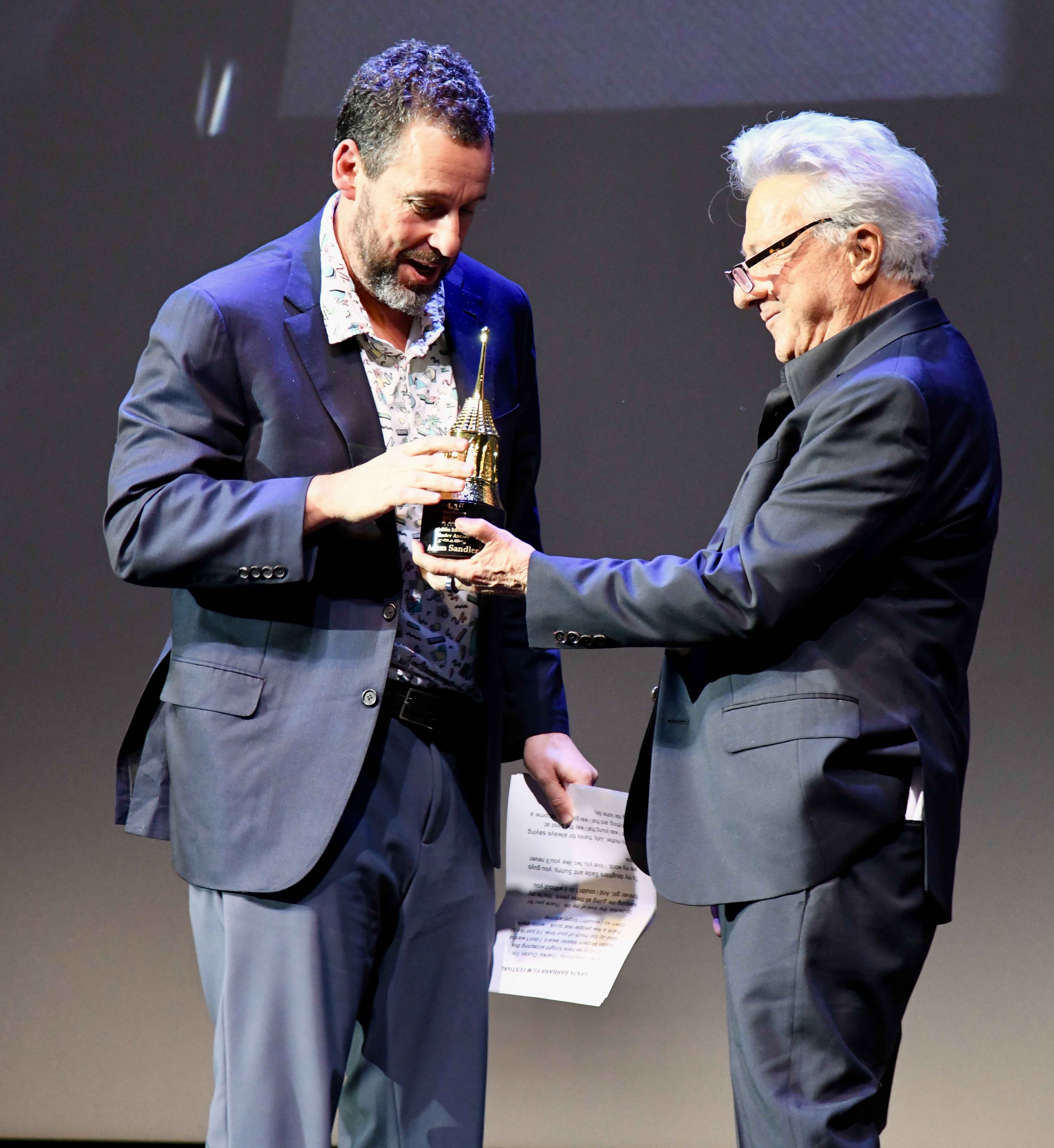 When Sandler finally walked out, the applause didn’t spike—it swelled. It was the kind of ovation that builds from recognition rather than hype. He gave a small wave, almost sheepish, as if unsure whether they had the right guy.