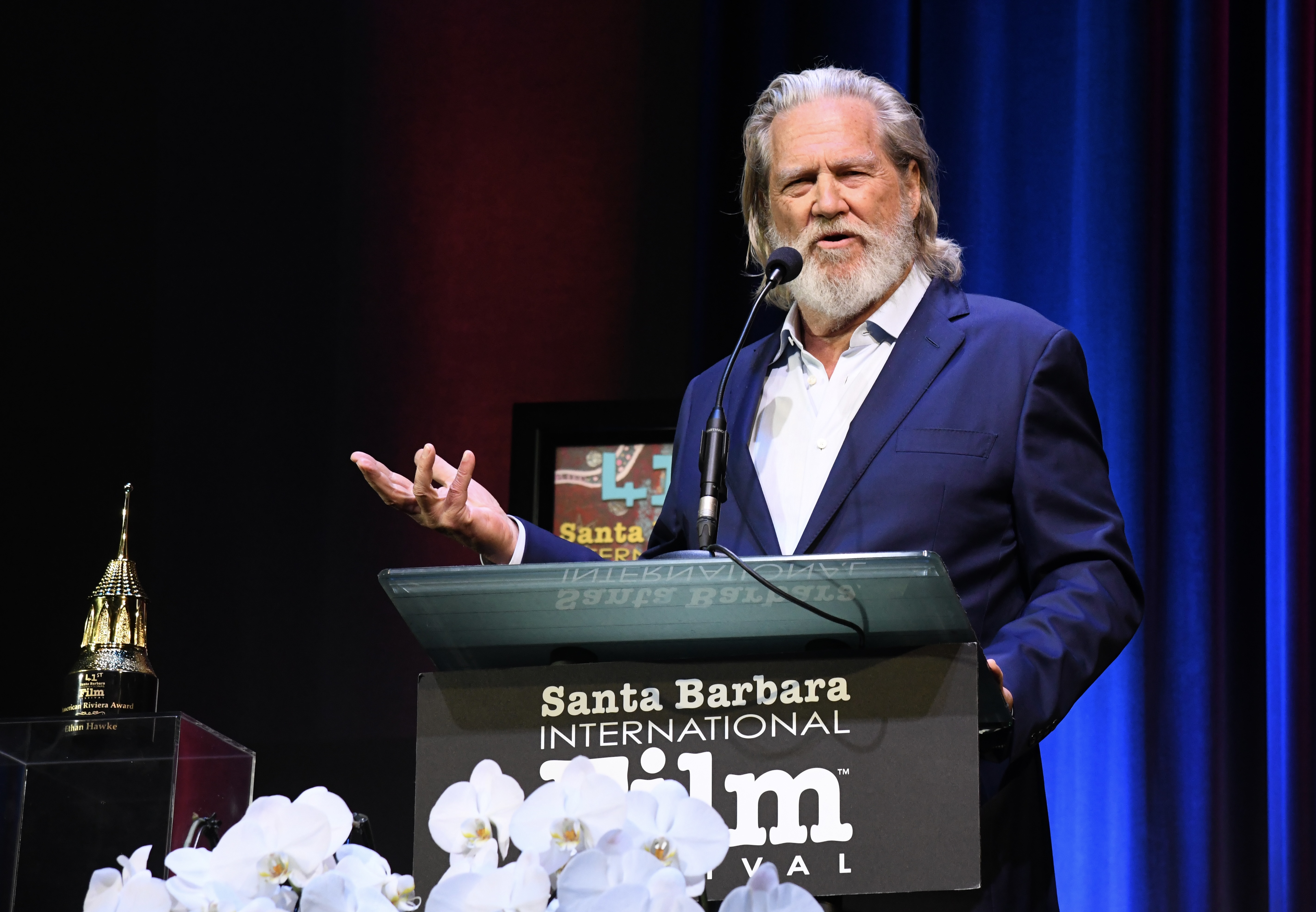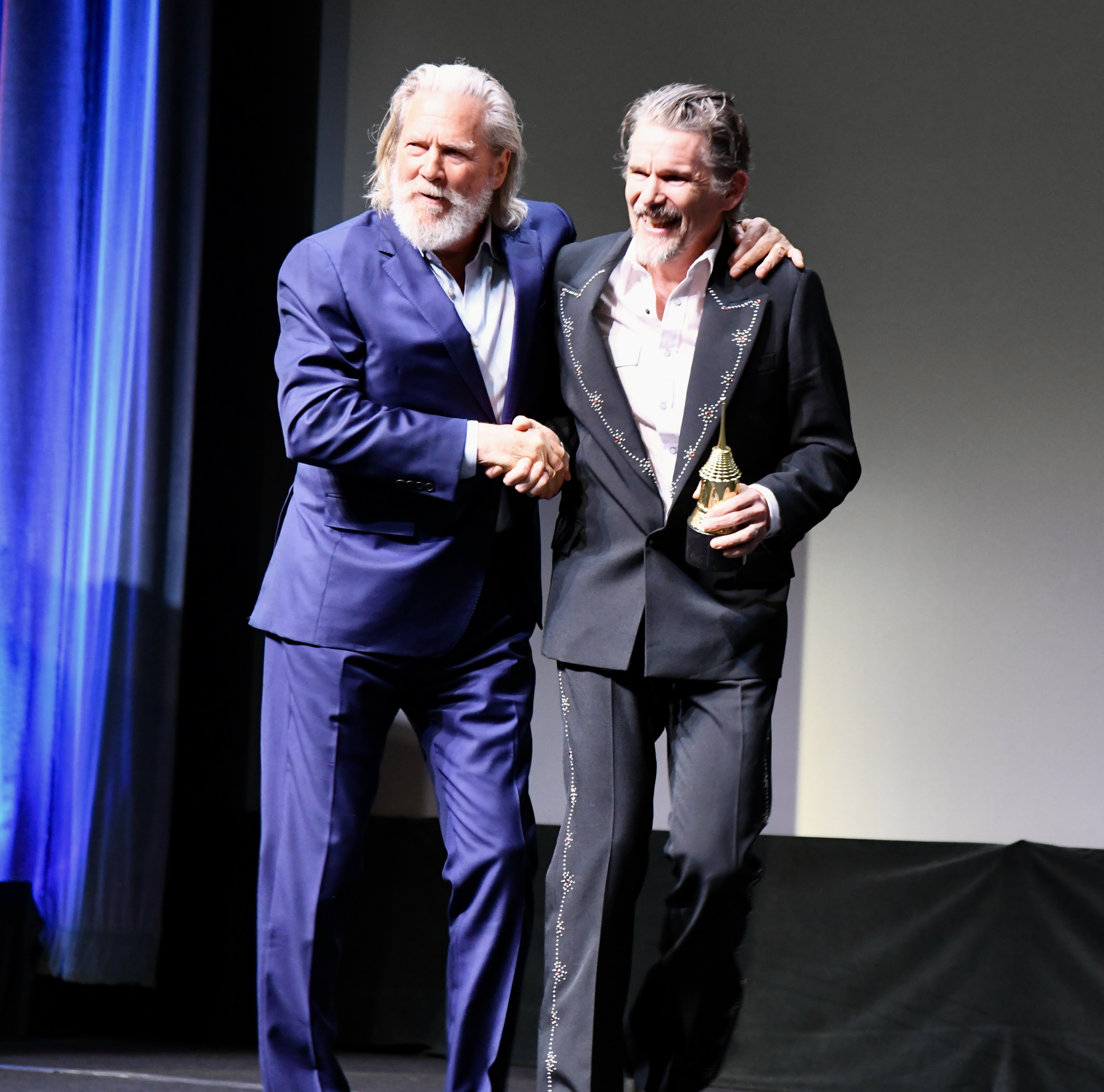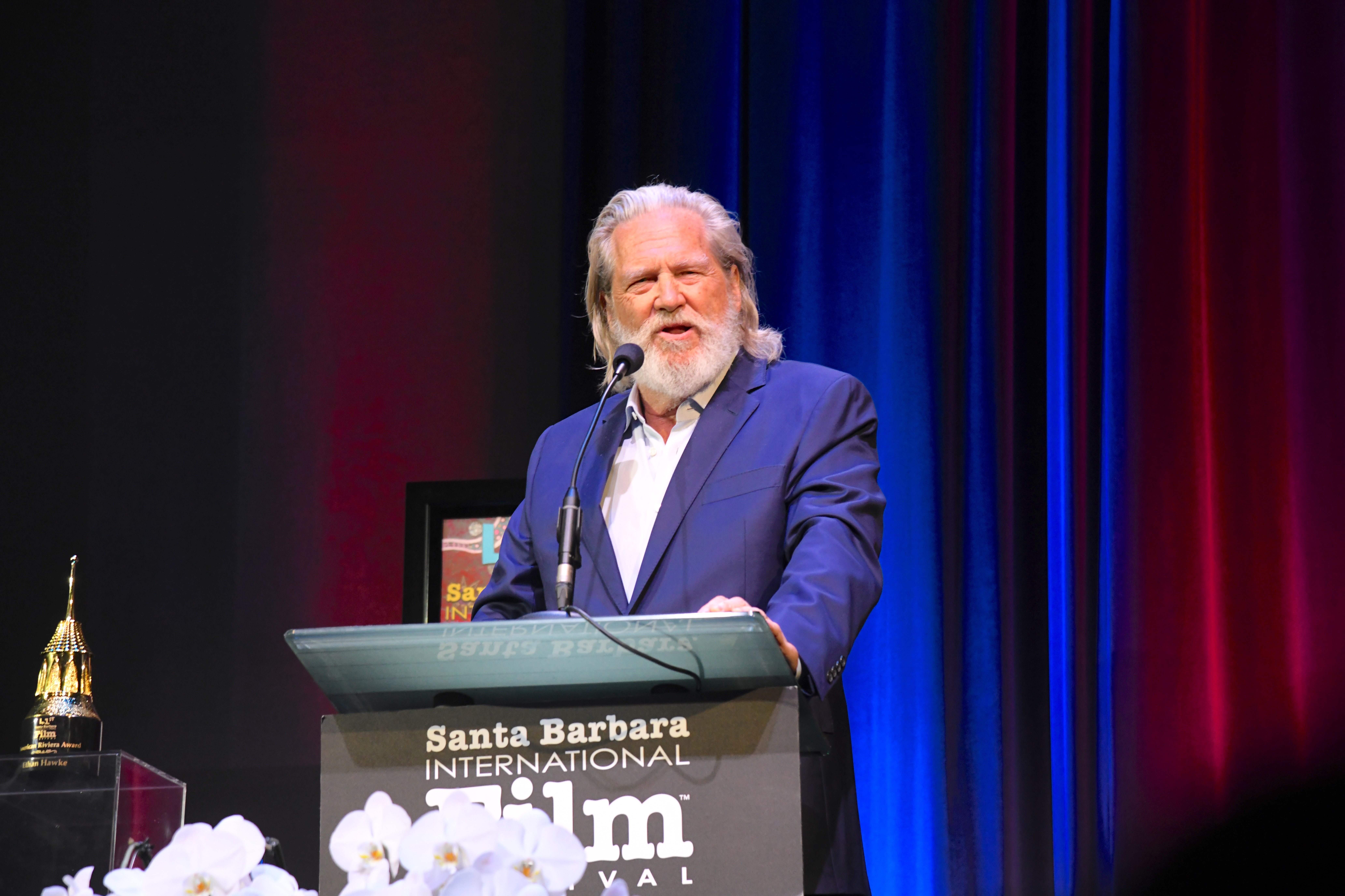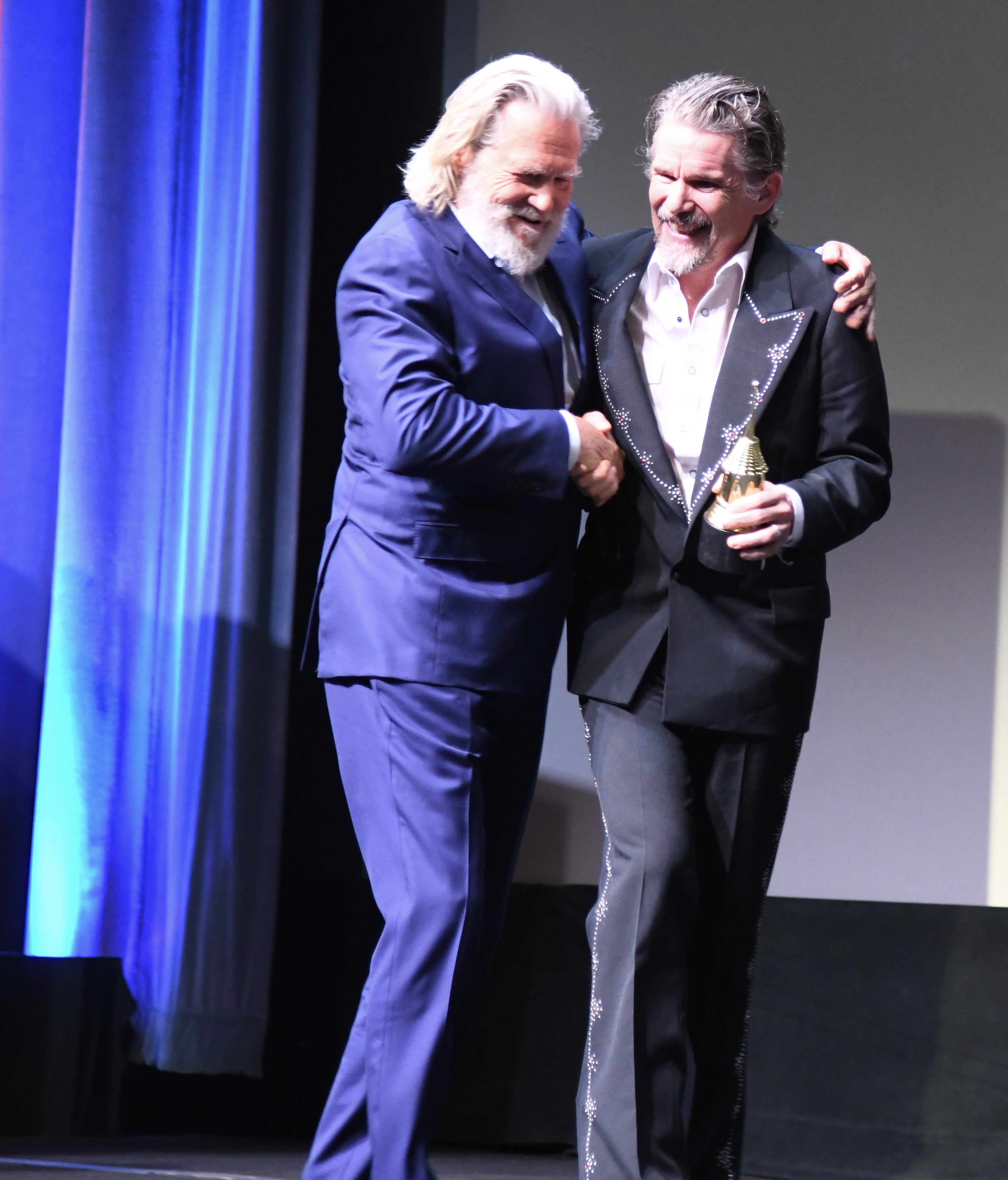 Ethan started the night on the Red Carpet with his family before doing photos and a few interviews. The highlight of the carpet came next. The award was going to be presented to Santa Barbara native Jeff Bridges. The two stars saw each other and quickly embraced and started talking. It turned out that that was the first time the two had met.