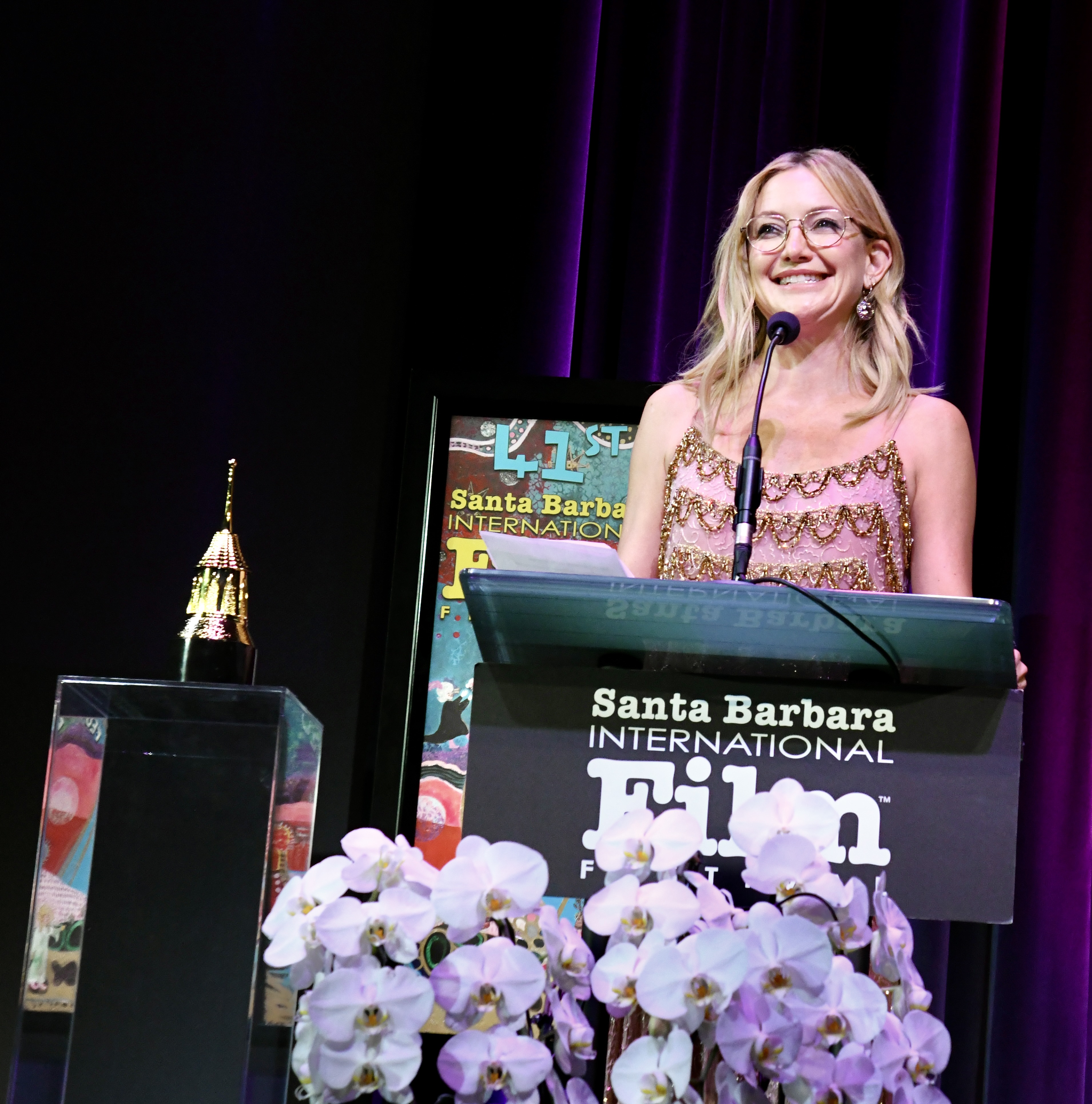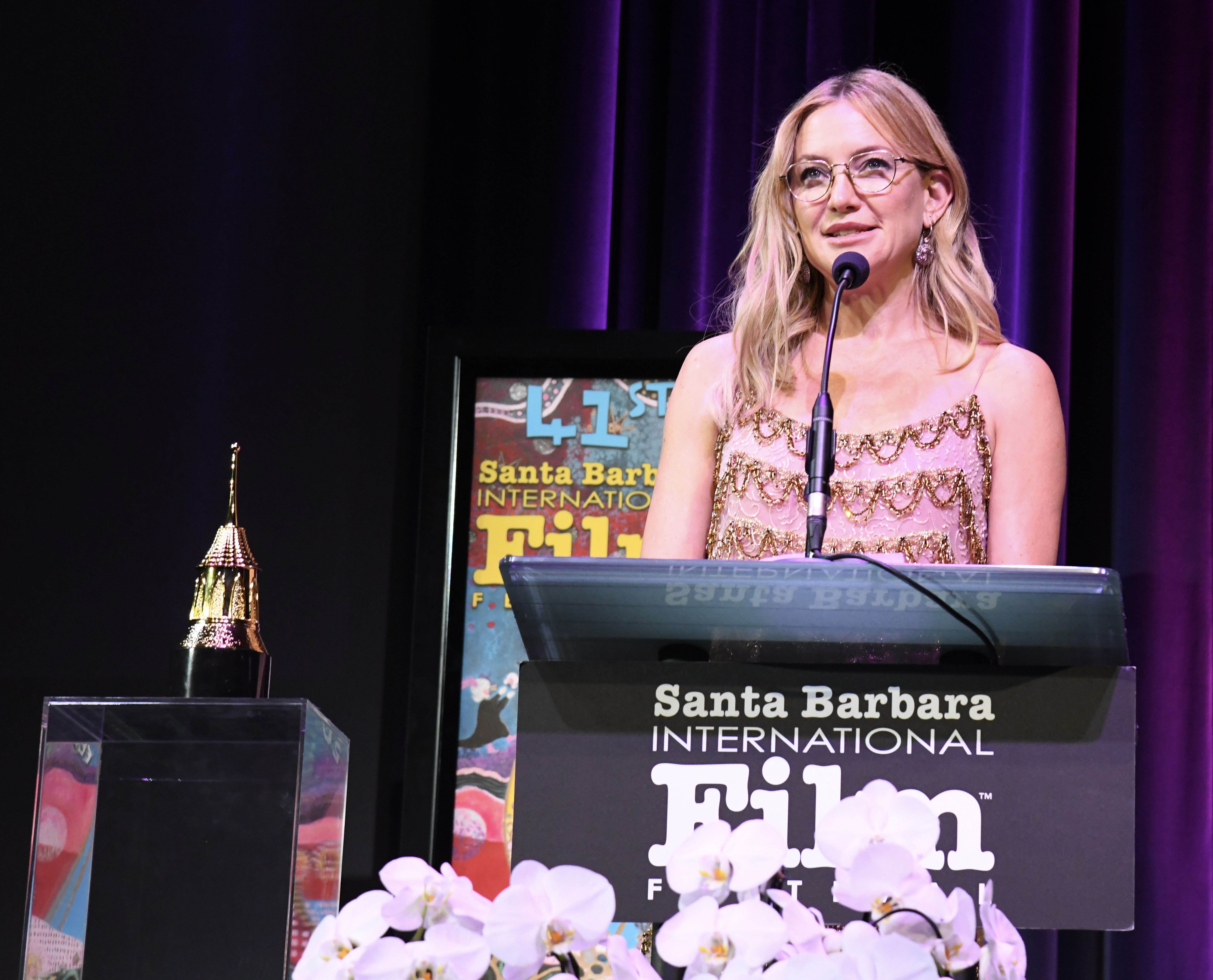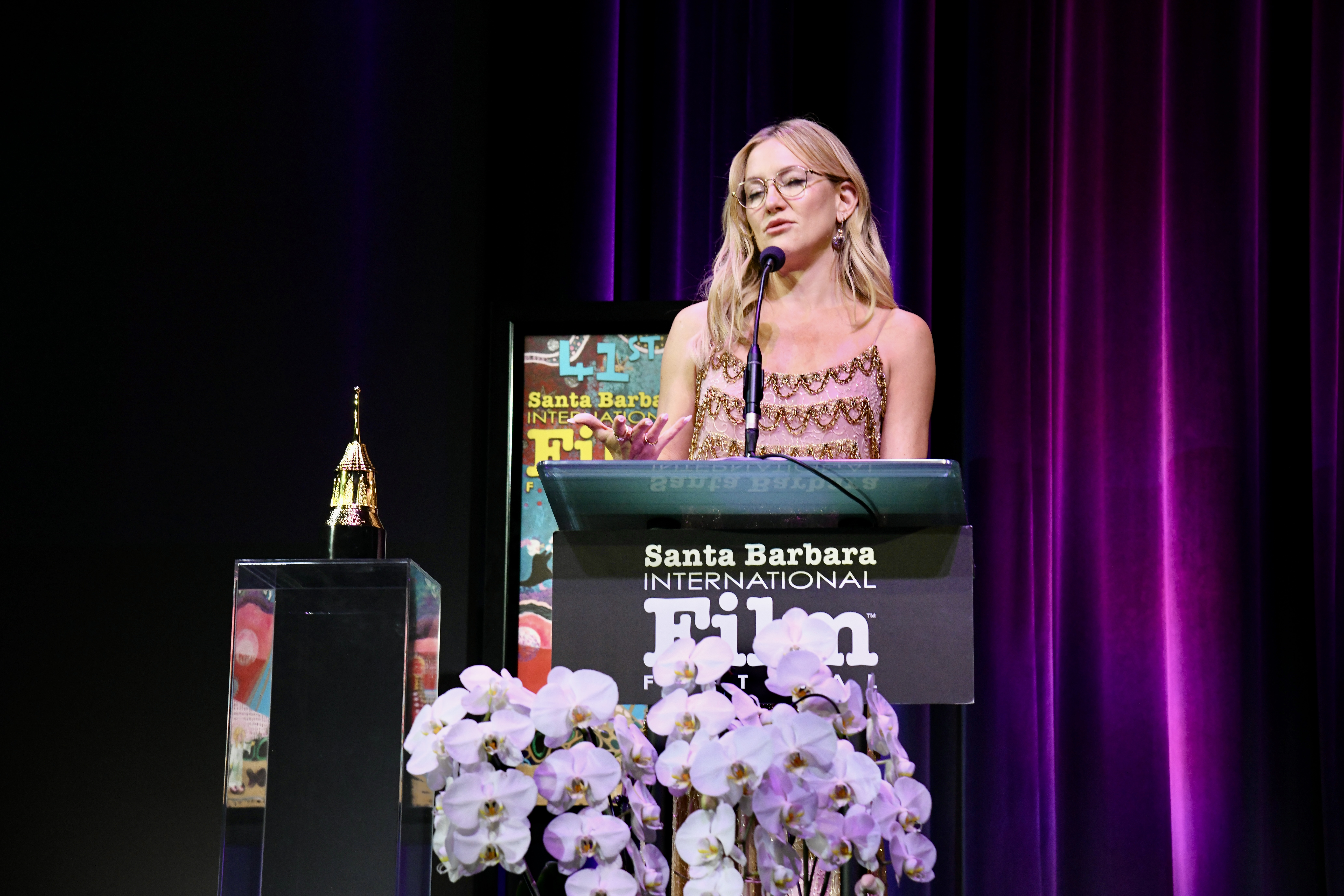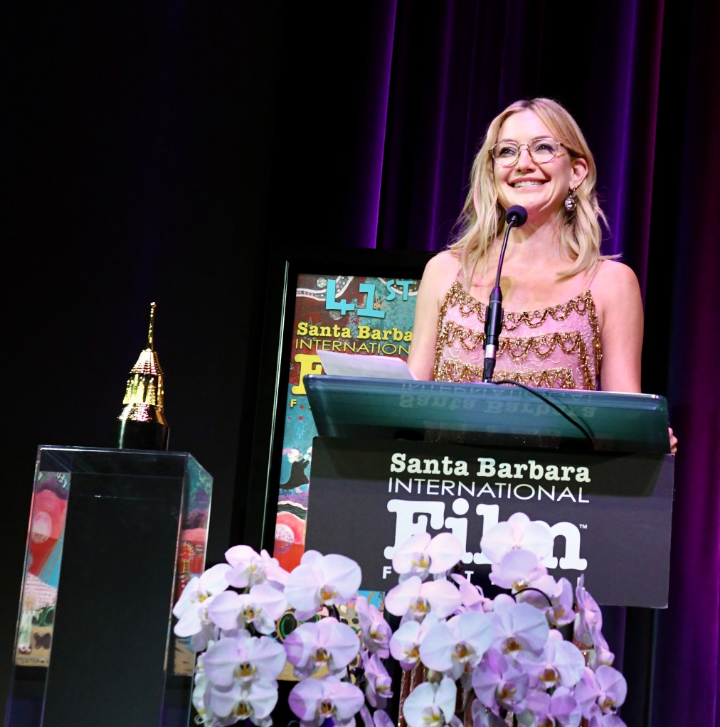 Hudson also spoke candidly about her creative ambitions—particularly her desire to take on roles that challenge expectations and allow for transformation. That drive has extended beyond film into music, including her 2024 album Glorious, further emphasizing her multifaceted artistry. Kate was moved as she read a spech at the podium.